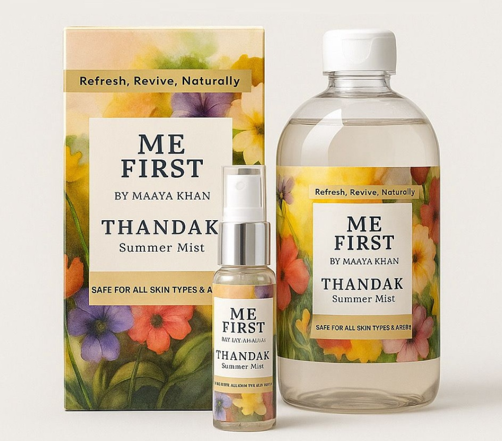 Infused with rose water, peppermint oil, satay podina (mint), and skin-loving botanicals, THANDAK is your all-natural escape from the heat.